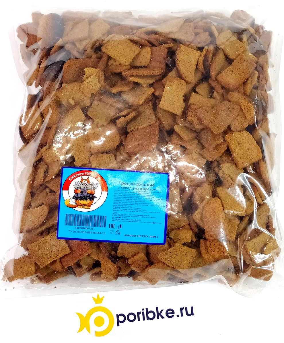 Состав: хлеб ржано-пшеничный (мука ржаная, мука пшеничная в/с, вода, вкусовая добавка "Холодец и хрен", масло подсолнечное.