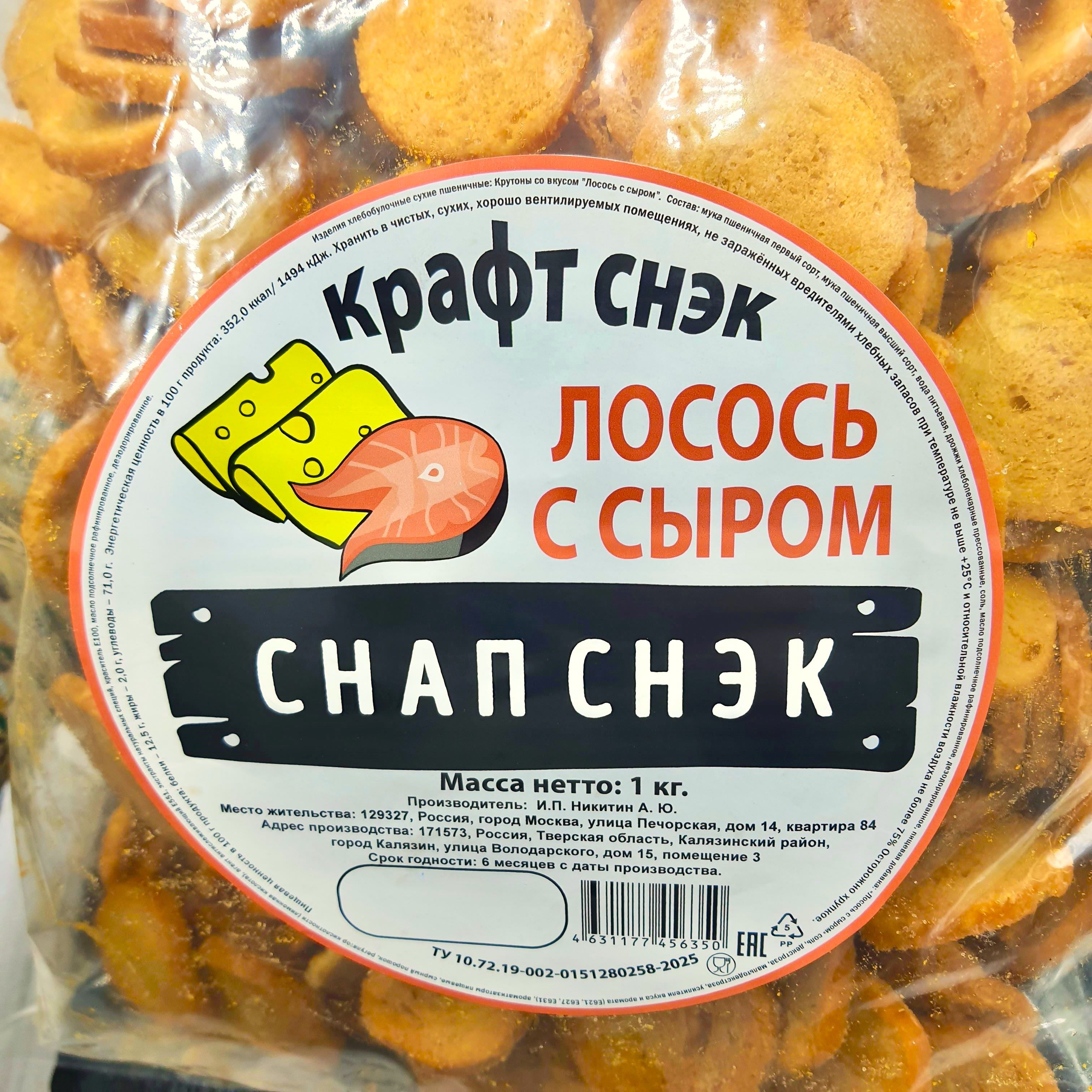 Гренки пшеничные СНАП СНЭК со вкусом лосося с сыром.