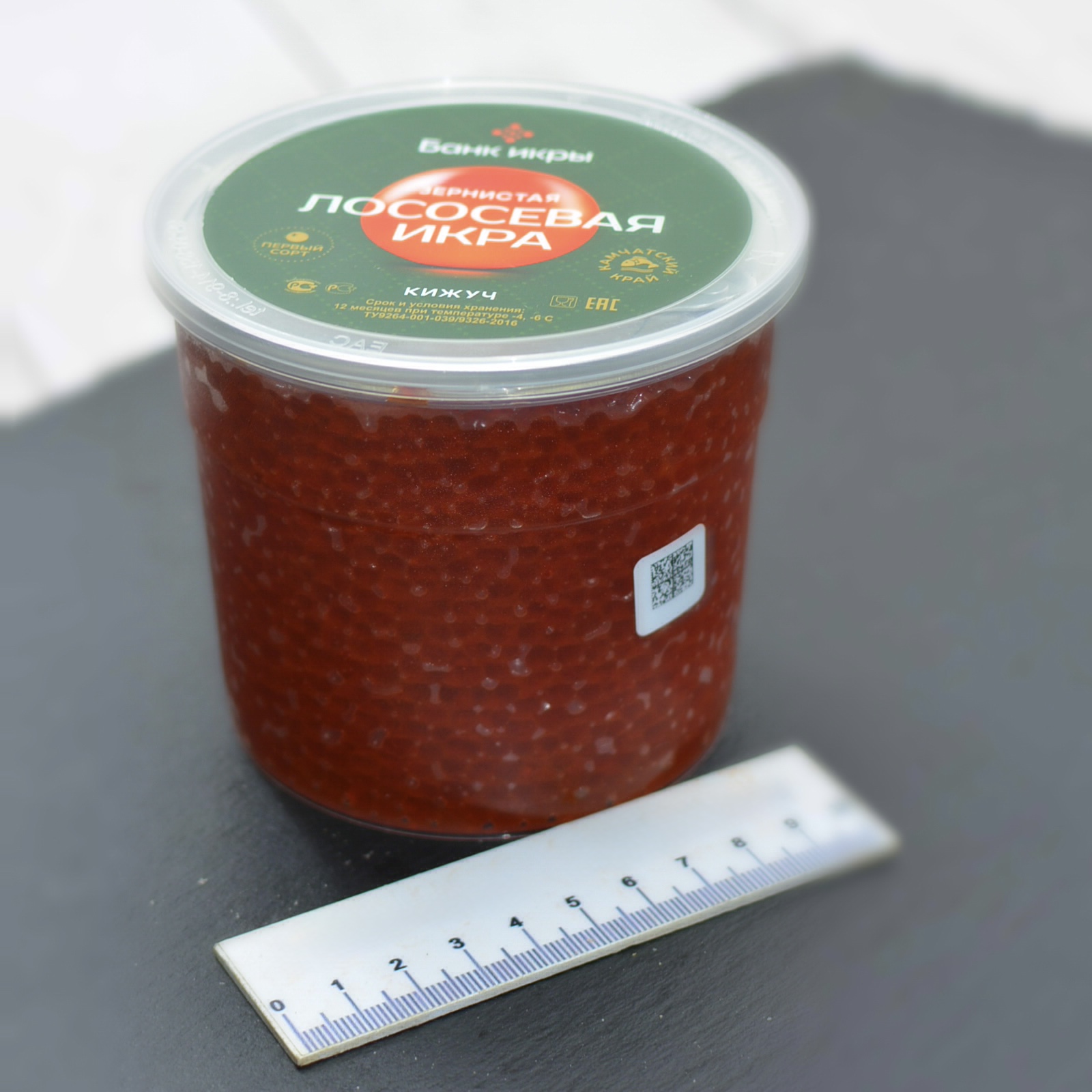 Икра красная лососевая кижуча зернистая слабосоленая 1-го сорта.
