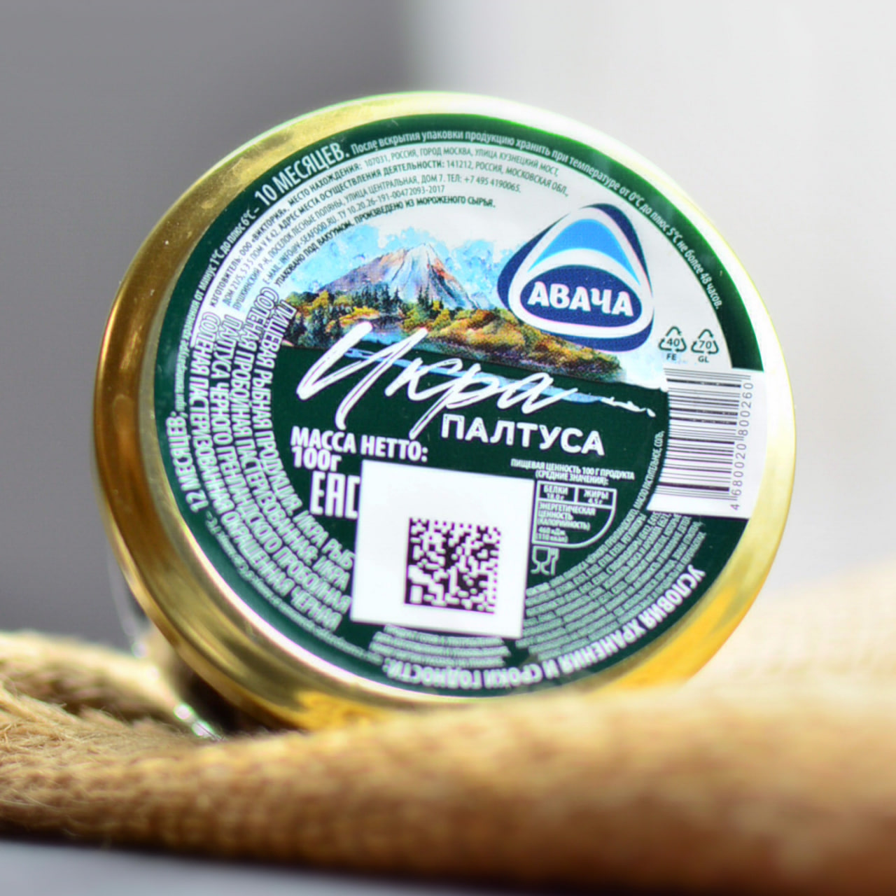 Фасована по 100 г в стеклянной банке под вакуумом. Произведено компанией "Авача", г. Мурманск, Россия.