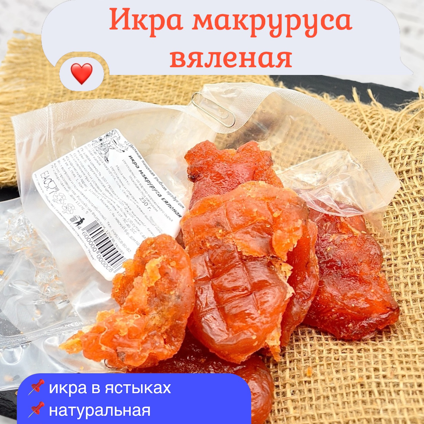Икра макруруса «Путевые Завяленки» — вяленый деликатес в ястыках.