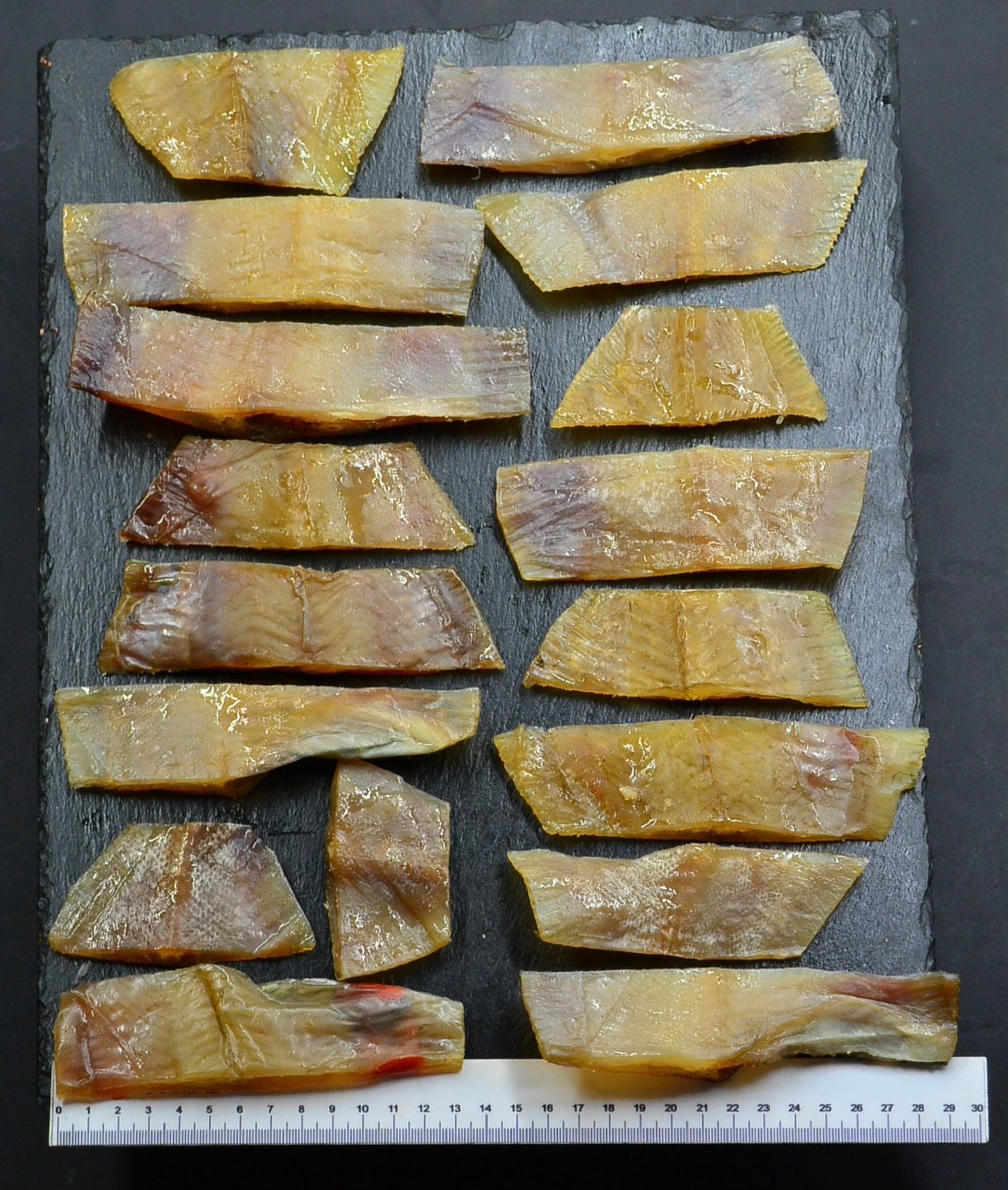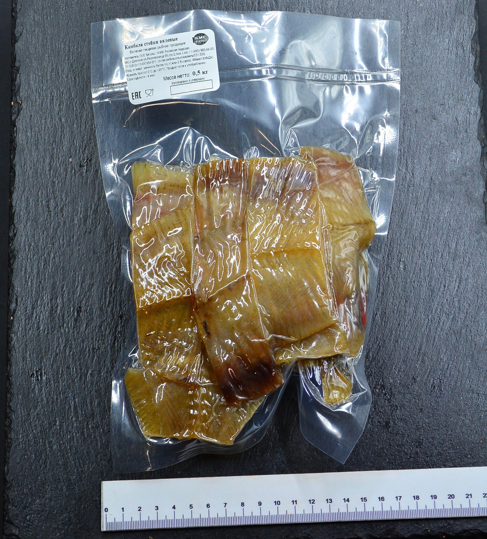 Камбала стейки вяленые — сочный рыбный деликатес с нежной текстурой и классическим вкусом. Удобный формат стейка позволяет наслаждаться мясистой частью рыбы без лишних хлопот с разделкой целой тушки.