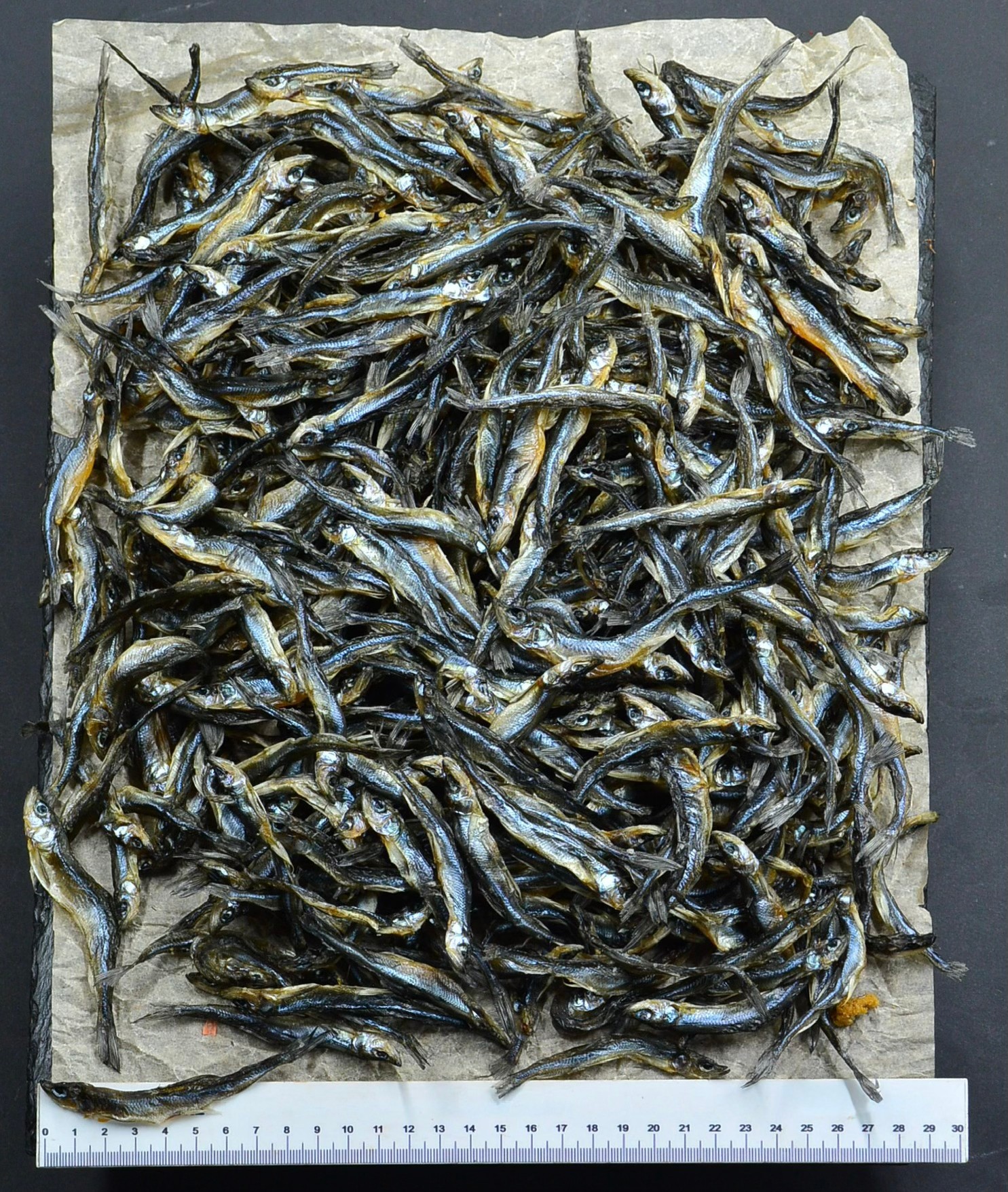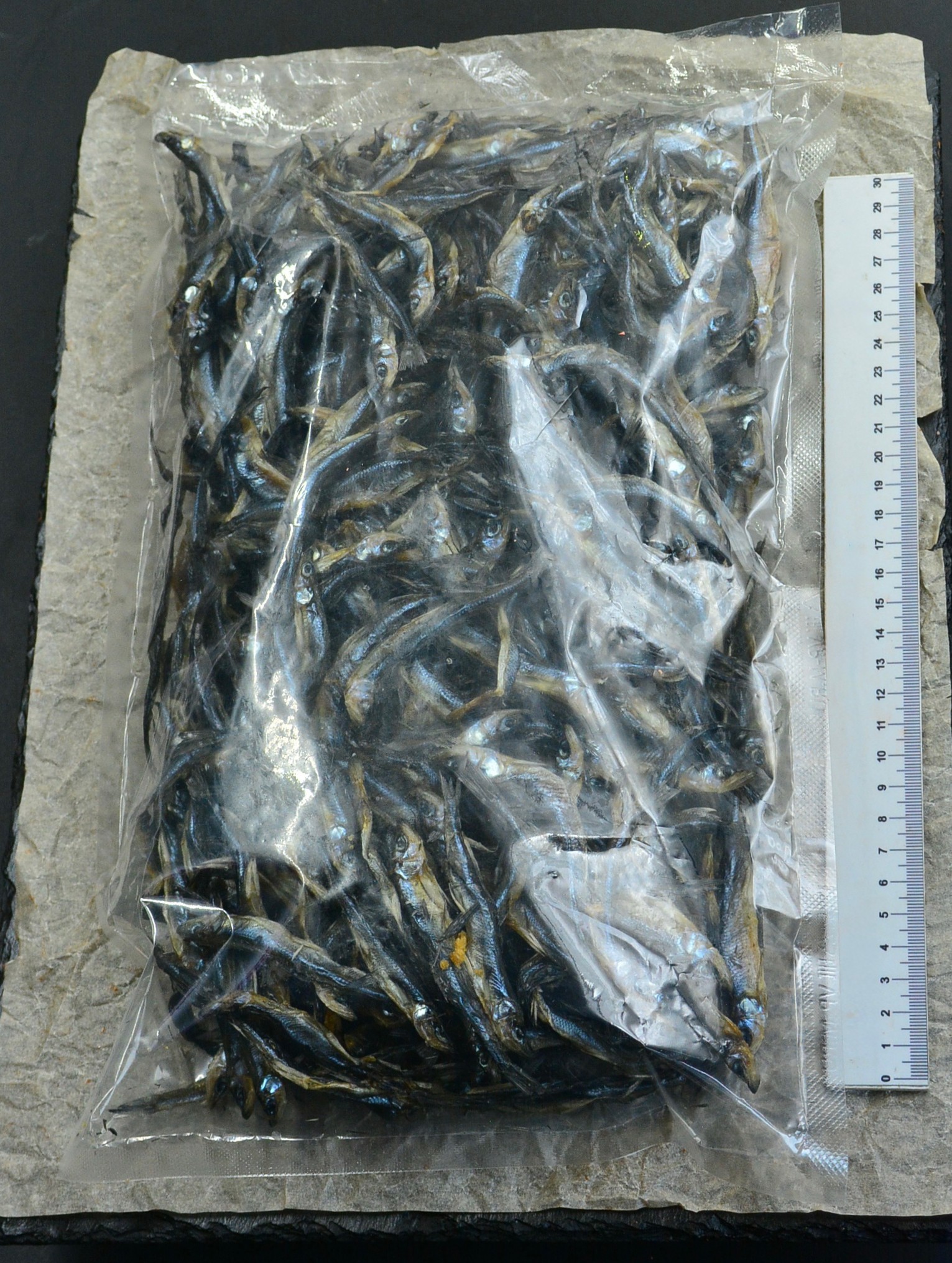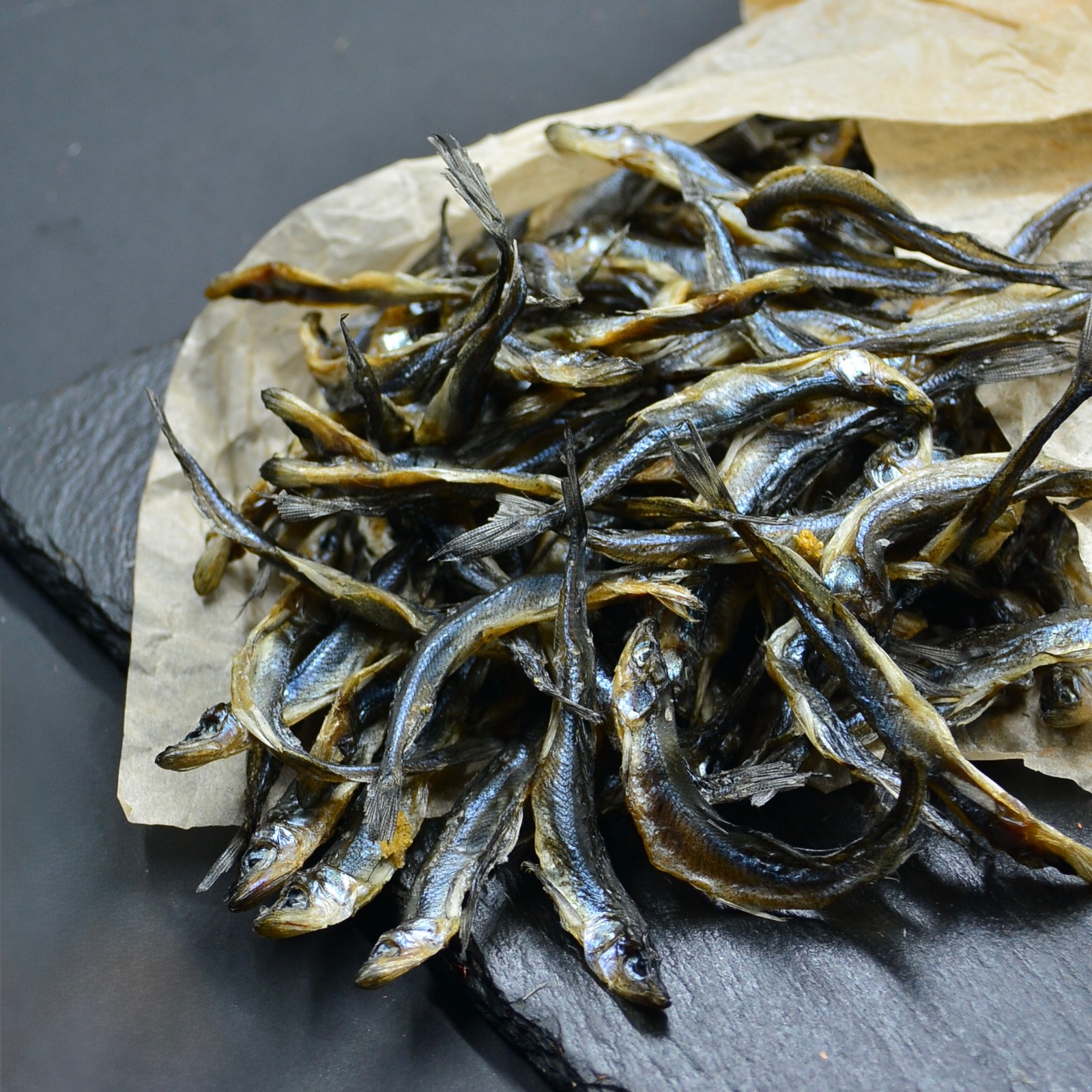 Длина рыбки — от 6 до 11 см, ширина тушки — от 1 до 2 см. Это мелкая, «семечковая» корюшка, которая особенно ценится за то, что её можно есть целиком, и она идеально провяливается до хрустящего состояния. Это натуральный продукт, фактические размеры могут отличаться от средних значений.