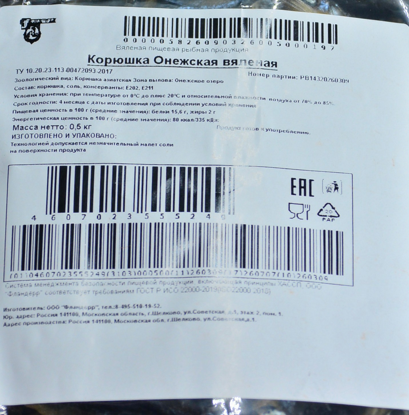 Продается от уп/0,5 кг (поштучно). Изготовитель: ООО «Фландерр»; производство: Россия, Московская обл., г. Щелково.