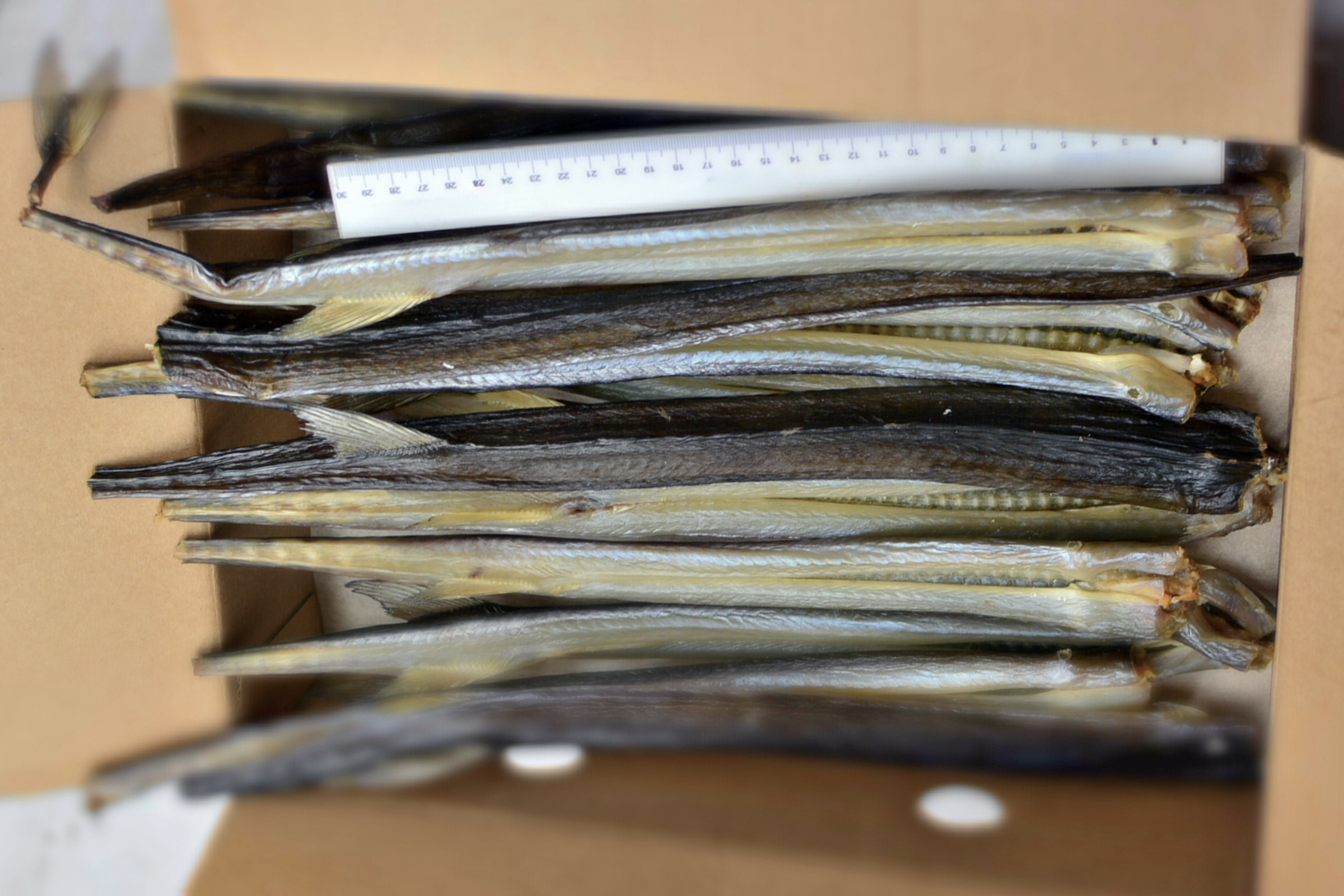 Рыба-игла вяленая — экзотический морской деликатес с уникальным вкусом и необычным внешним видом. Процесс естественного вяления позволяет сохранить плотную текстуру нежного мяса и подчеркивает благородный природный аромат морской рыбы.Купить в интернет-магазине Рыбная база «По-Рыбке».