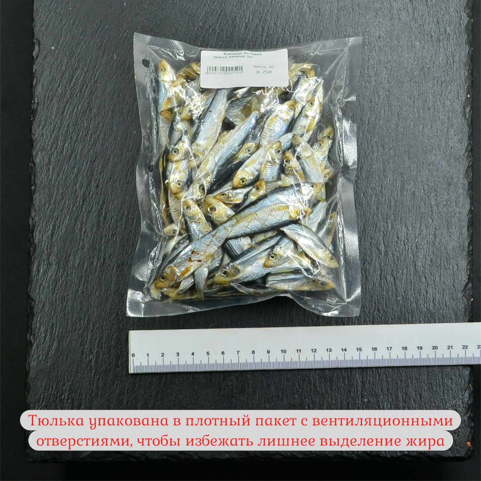 * Удобная упаковка: Фасовка по 250 г с вентиляцией позволяет рыбке «дышать», исключая появление лишней влаги и сохраняя её текстуру.