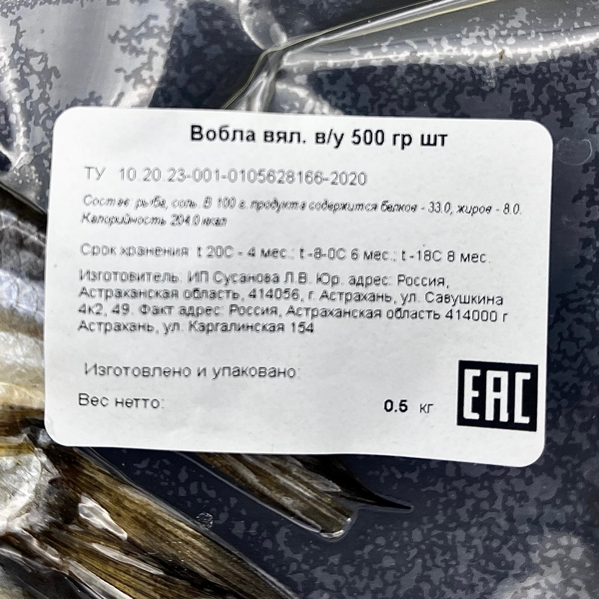 Вобла вяленая сухая с икрой Астраханская Цена за упаковку уп/500 г. Вес одной штуки 25-30 г/шт.